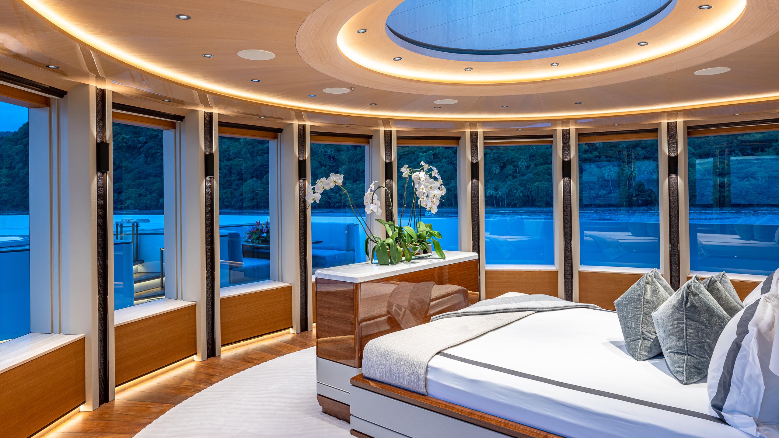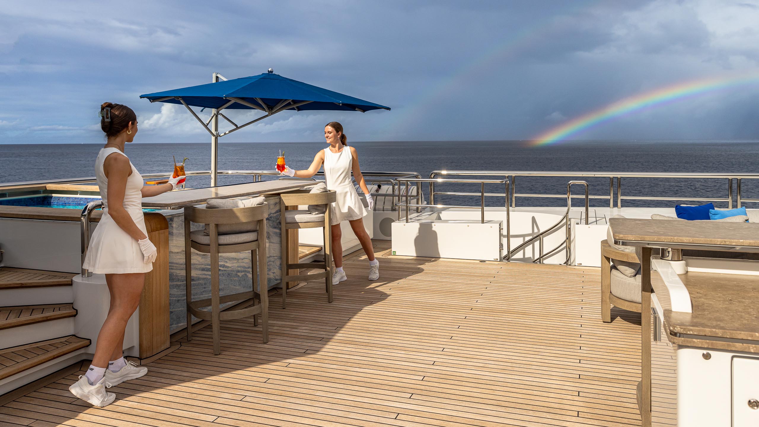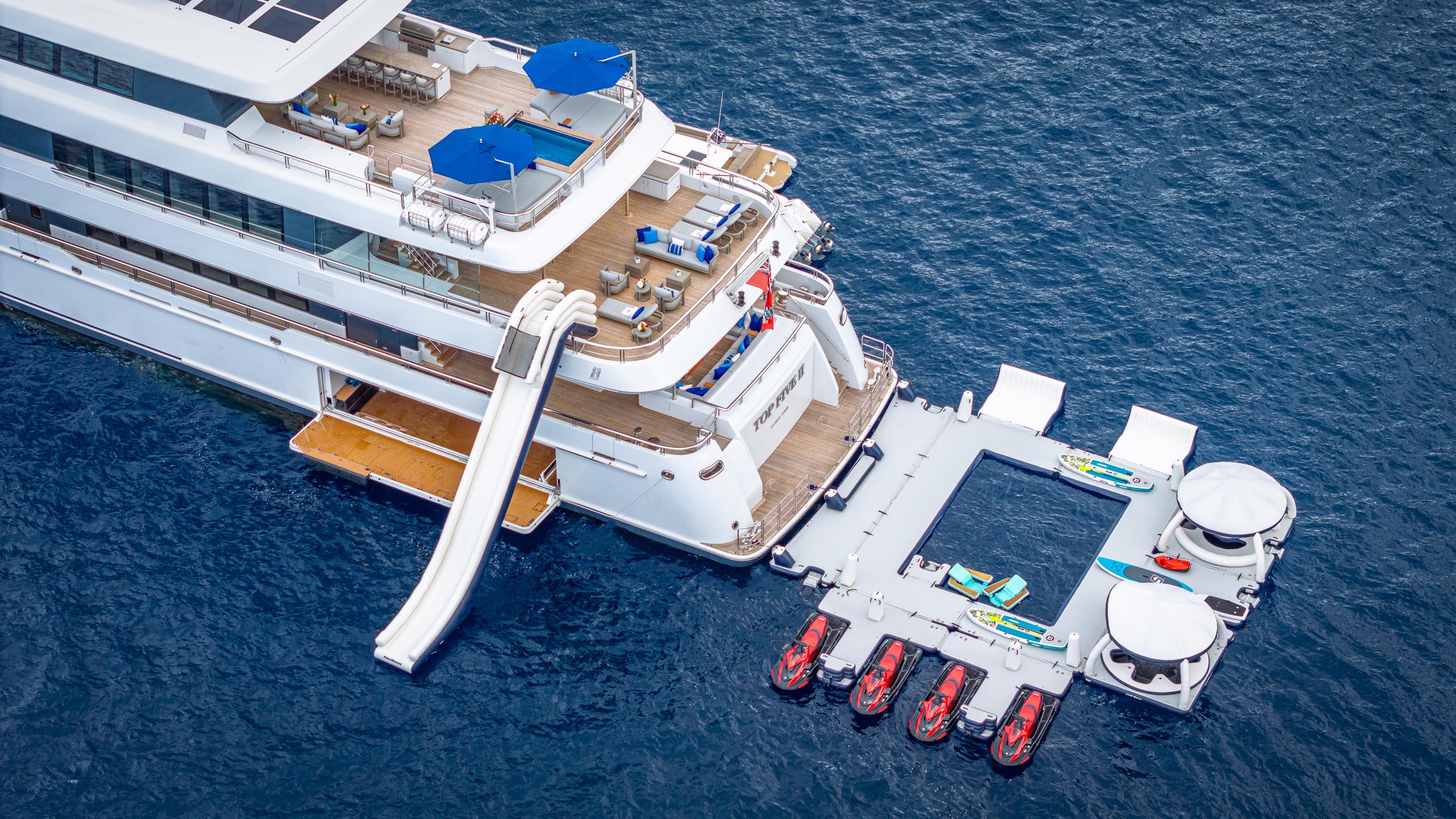 Built in 2021, Top Five II boasts a multitude of decks ideal for relaxation and entertainment indoors or outdoors, ensuring guests will live la dolce vita on the open waters. She has sensational features such as a movie theatre, elevator, beach club and gym.