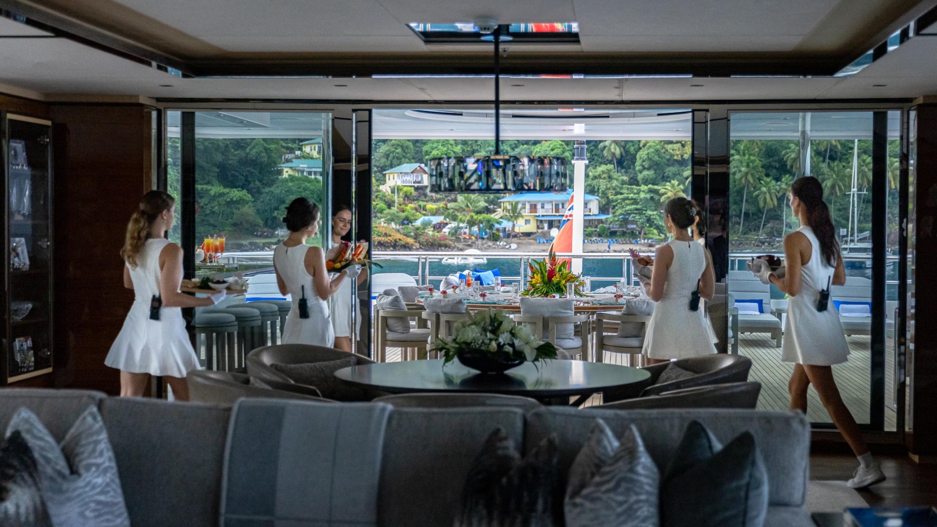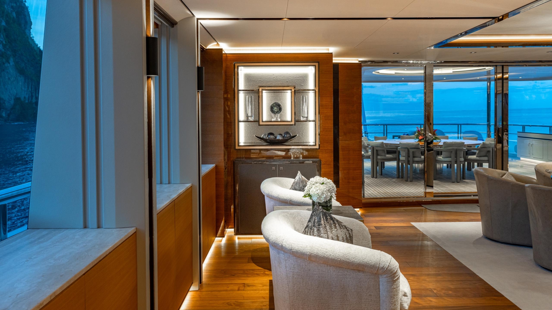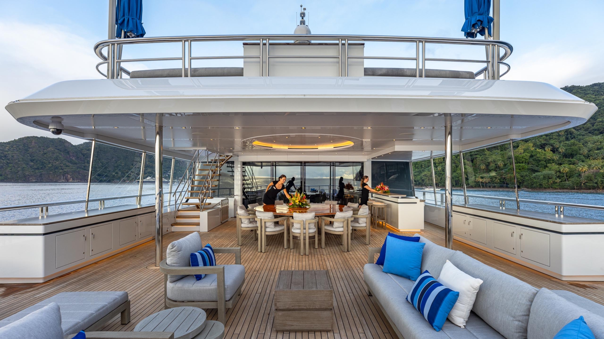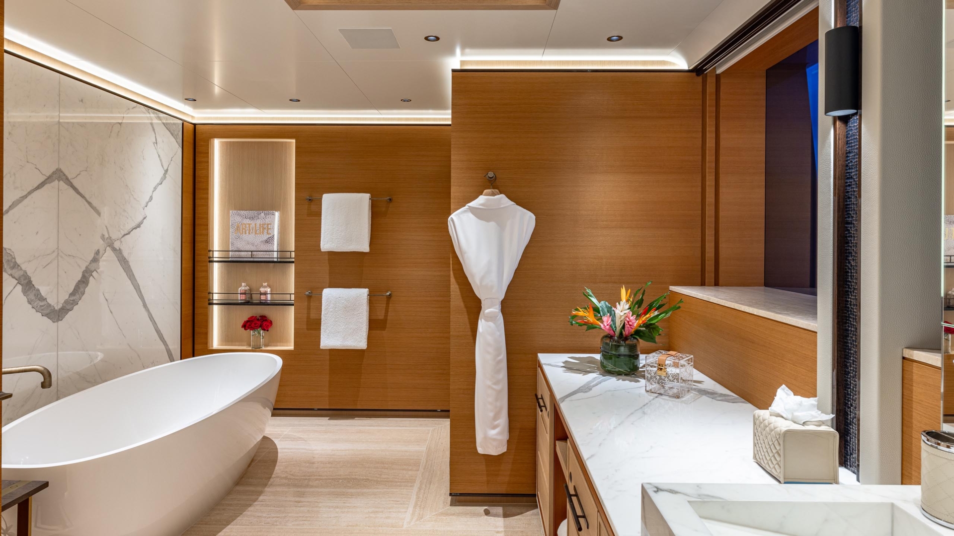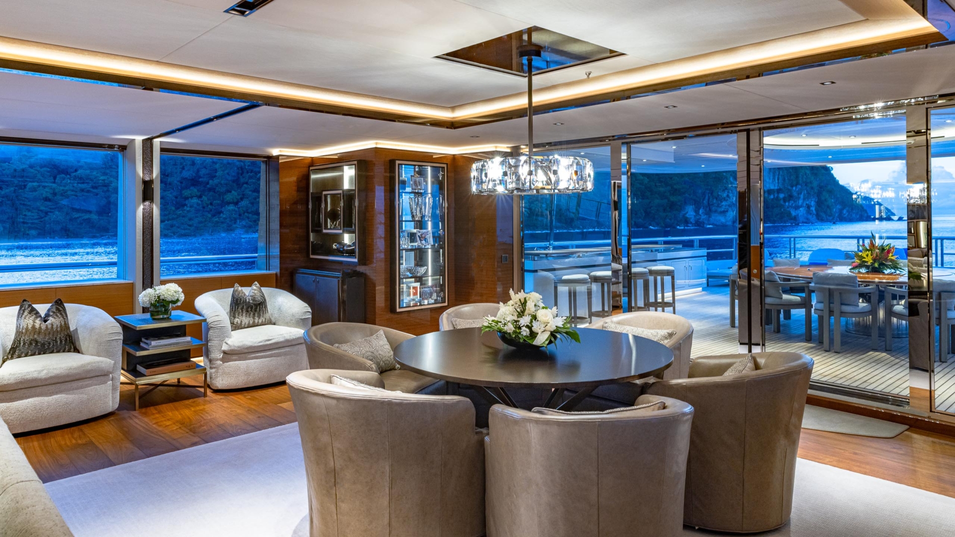 Top Five II offers guest accommodation for up to 12 guests in 6 suites comprising a master suite, one VIP cabin, two double cabins and two cabins that can operate as twins or doubles. The supremely spacious full beam master suite features extensive storage space provided by the dressing room benefits from a his and her bathroom.