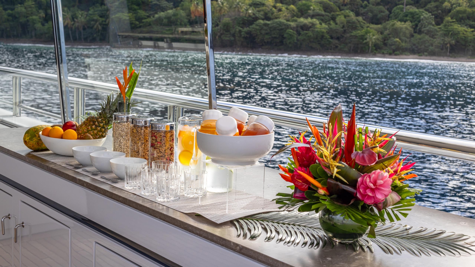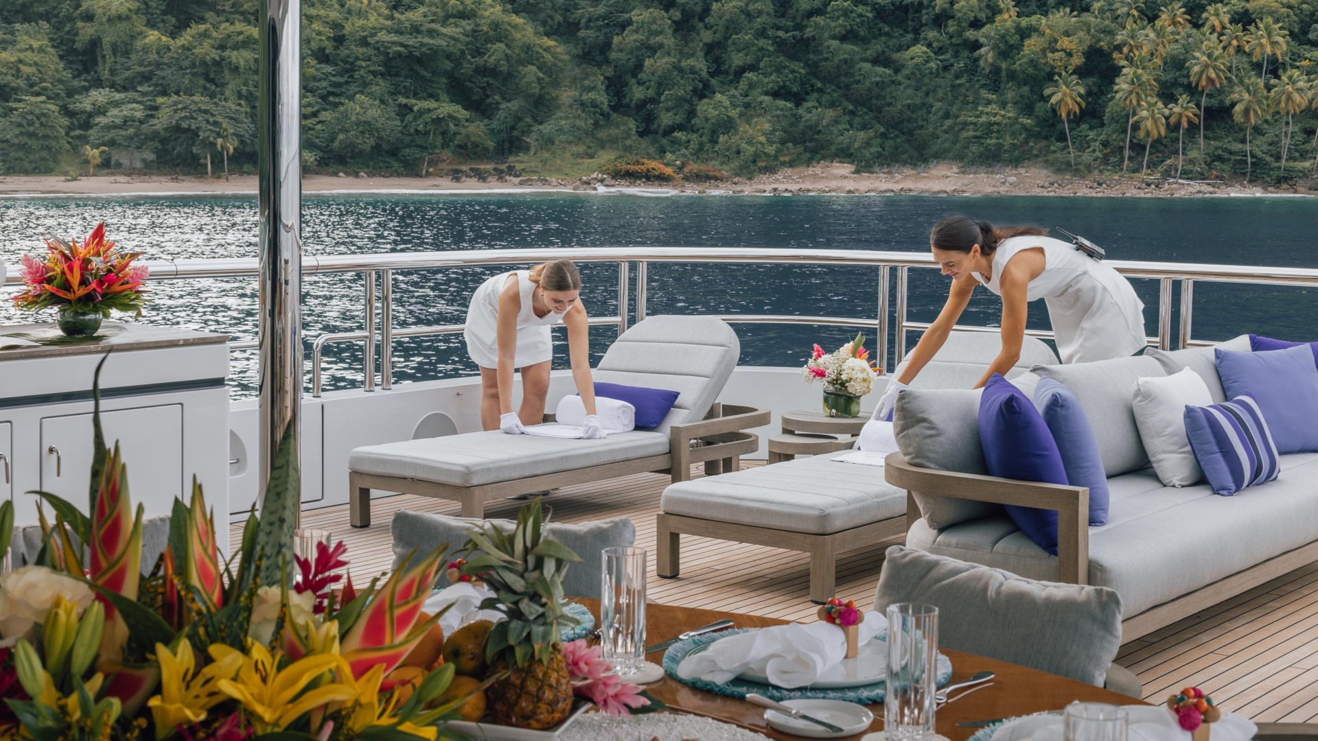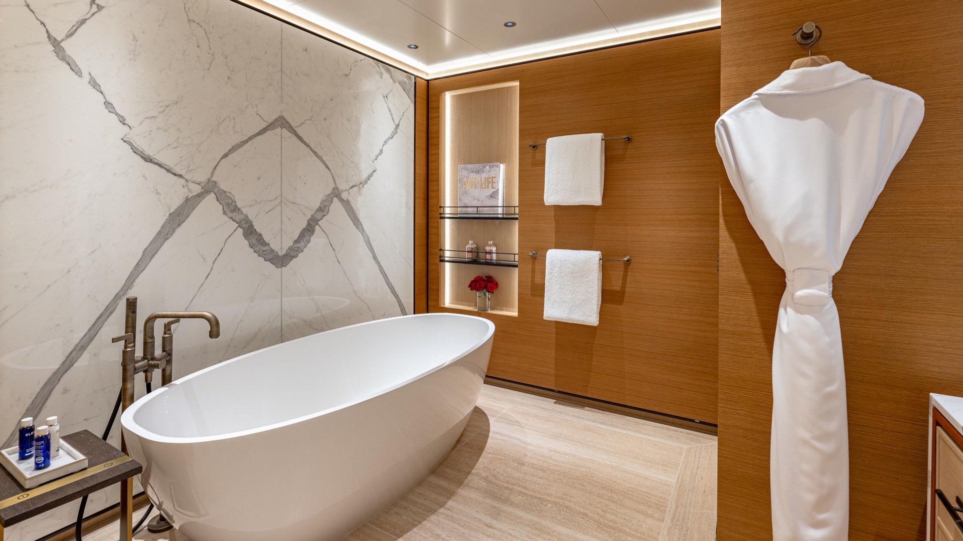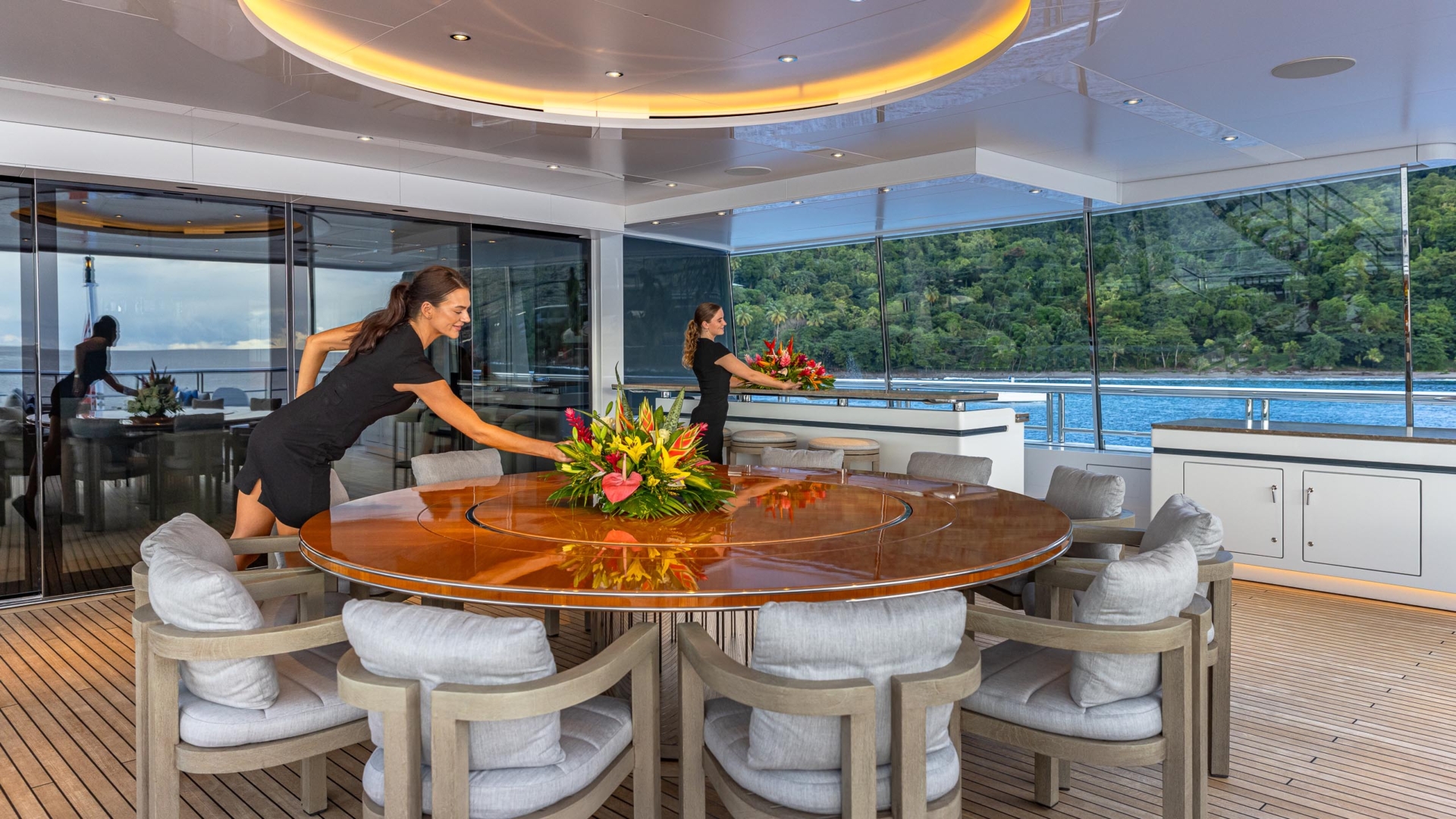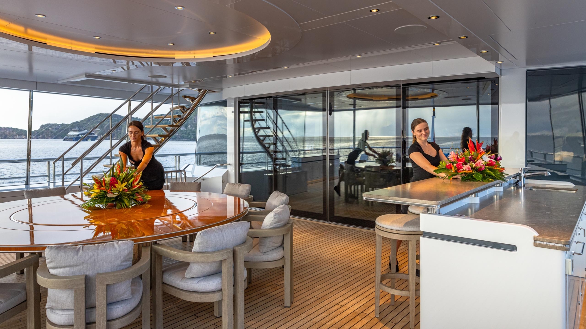 Top Five II offers guest accommodation for up to 12 guests in 6 suites comprising a master suite, one VIP cabin, two double cabins and two cabins that can operate as twins or doubles. The supremely spacious full beam master suite features extensive storage space provided by the dressing room benefits from a his and her bathroom.